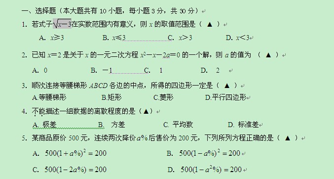 江苏省江阴市峭岐中学2013-2014学年度第一学期初三数学12月月考试卷