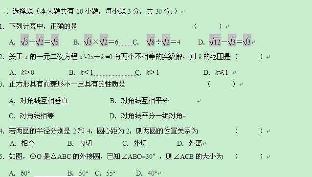 江苏省江阴长寿中学2013-2014学年度第一学期初三数学12月月考试卷