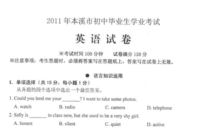 2011年辽宁省本溪市中考试题(英语)扫描版