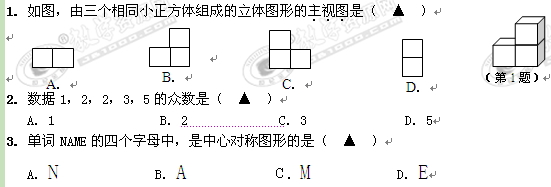 2009年浙江省台州市初中学业考试试题(数学)