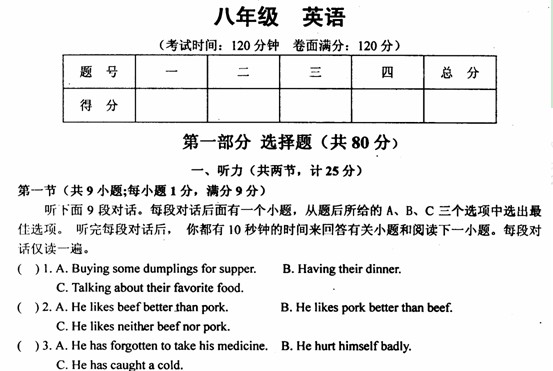 湖北省黄冈市黄冈庙中学10-11学年八年级下学期期末考试试题(英语)扫描版
