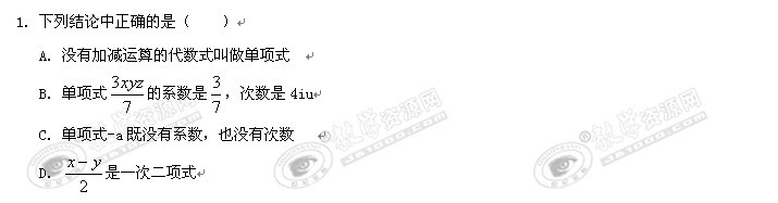 数学:6.1《整式》同步练习(冀教版七年级上)