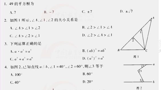 2011年湖南省怀化市初中毕业学业水平考试试卷(数学)