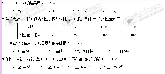 2011年四川省南充市高中阶段学校招生统一考试(数学)