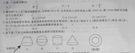 2011年浙江省衢州市初中毕业生学业考试(数学)
