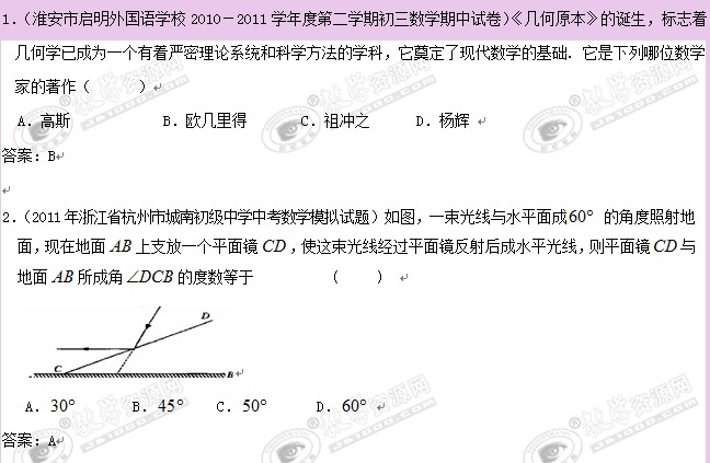 2011年全国中考模拟 真题试题汇编54章《图象信息与跨学科型》