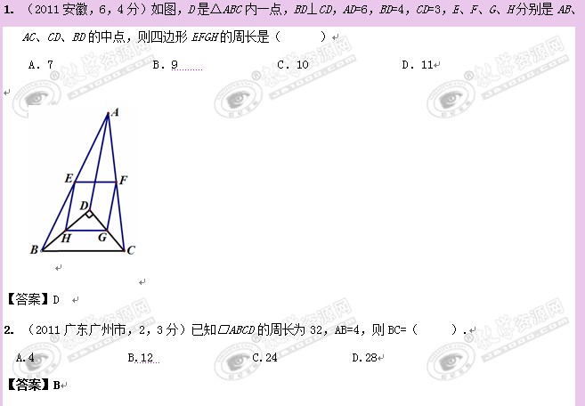 2009—2011年全国各地中考数学试卷分类汇编:多边形与平行四边形