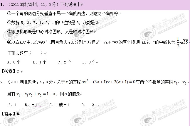 2009—2011年全国各地中考数学试卷分类汇编:一元二次方程