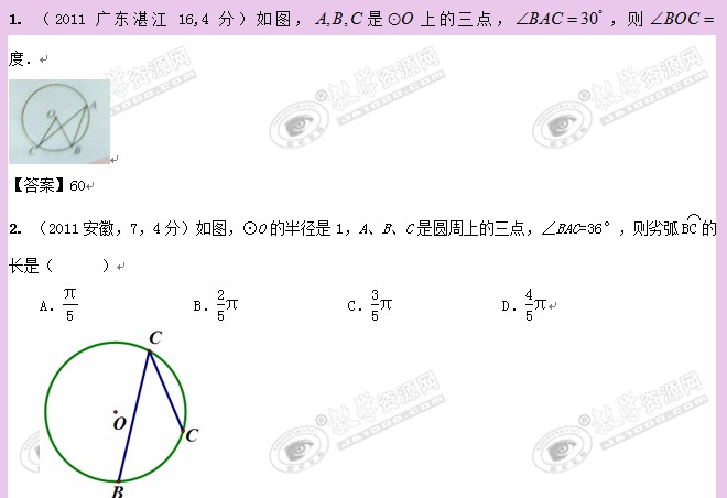 2009—2011年全国各地中考数学试卷分类汇编:圆的有关性质