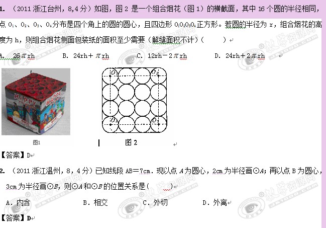 2009—2011年全国各地中考数学试卷分类汇编:圆与圆的位置关系