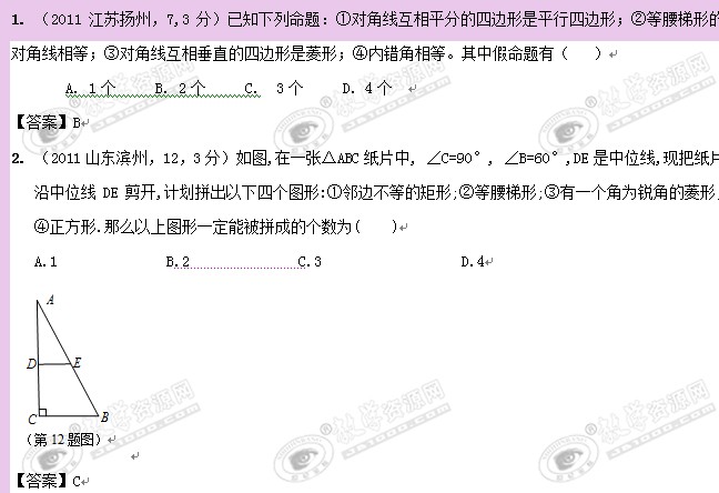 2009—2011年全国各地中考数学试卷分类汇编:梯形