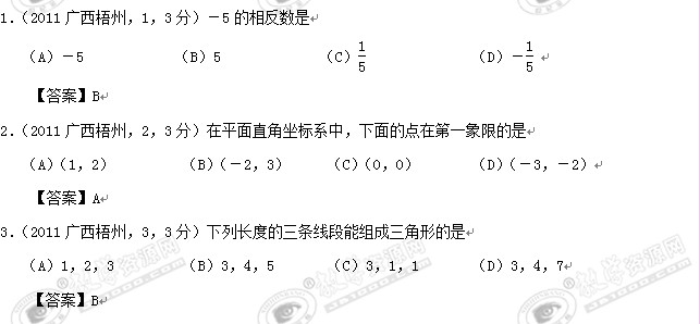 2011年广西梧州市初中毕业升学考试试卷(数学)