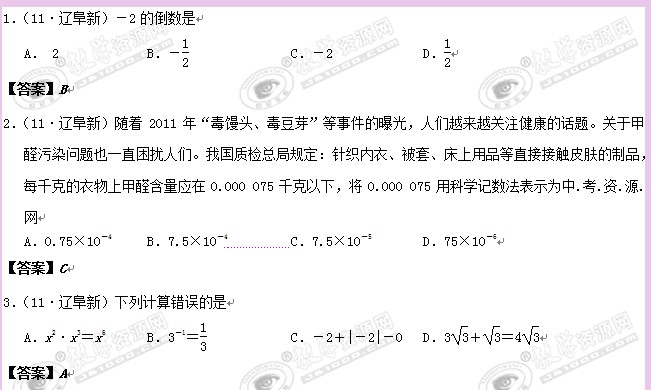 2011年辽宁省阜新市初中毕业生学业考试(数学)