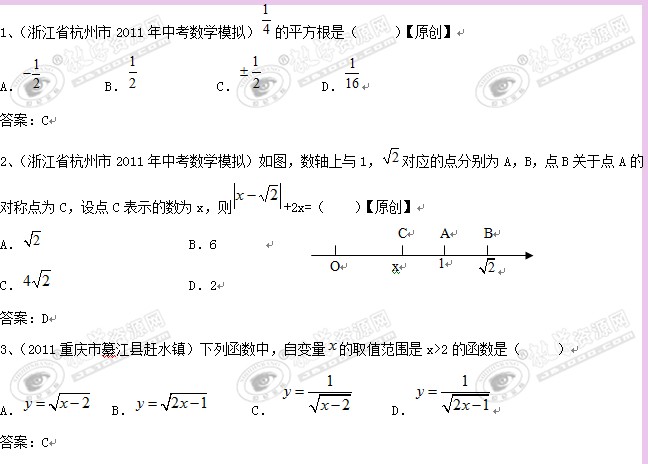 2011中考模拟分类汇编:二次根式