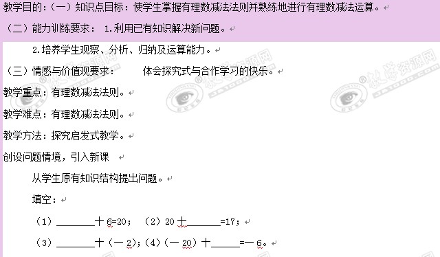 数学:1.3.3 《有理数的减法(一)》教案(人教版七年级上)