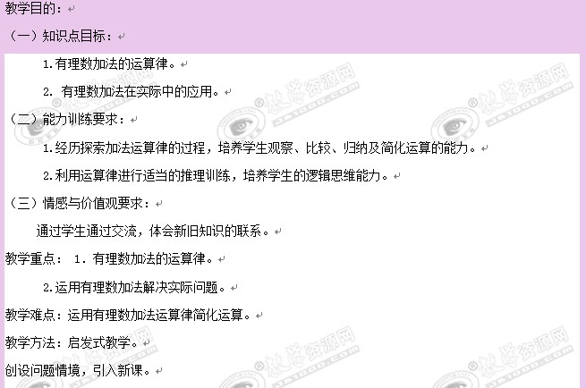 数学:1.3.2 《有理数的加法(二)》教案(人教版七年级上)