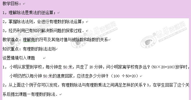数学:1.4.4《有理数的除法》教案(人教版七年级上)