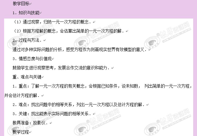 数学:3.1.1 《从算式到方程》教案(人教版七年级上)