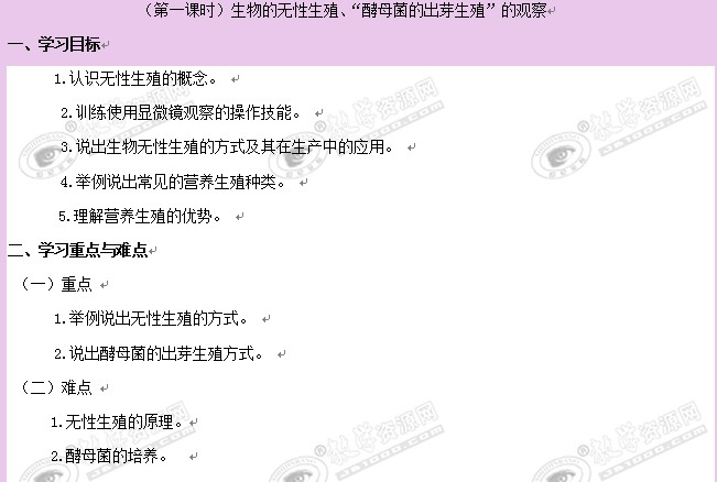 生物:14.1《生物的无性生殖1》教案(苏教版八年级上)