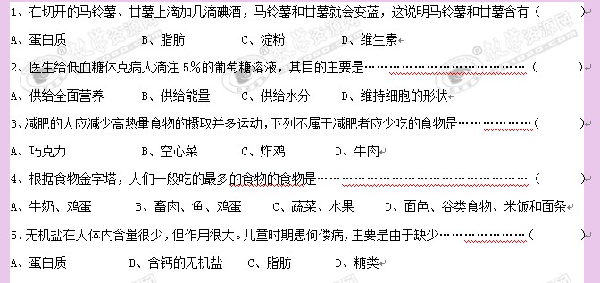 河北省霸州市10-11学年七年级上学期期末试题 (生物)缺答案