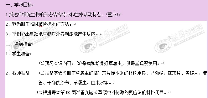 生物:4.3《单细胞生物》学案(苏教版七年级上)