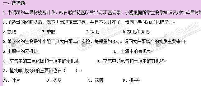 生物:第5章 《有机物的生产者—绿色植物》单元测试(苏科版七年级上)