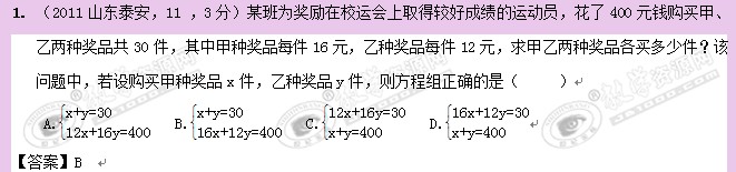 2011年全国各地中考数学试卷试题分类汇编八:二元一次方程组及其应用