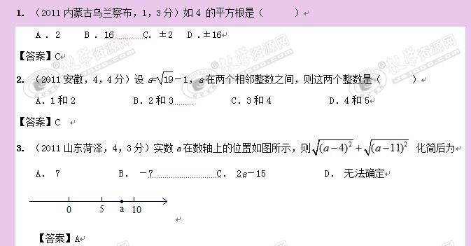 2011年全国各地中考数学试卷试题分类汇编九:二次根式