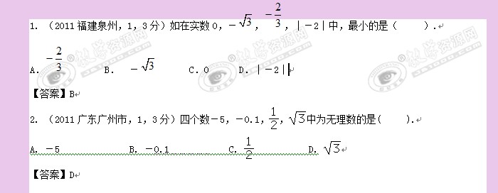 2011年全国各地中考数学试卷试题分类汇编十三: 实数
