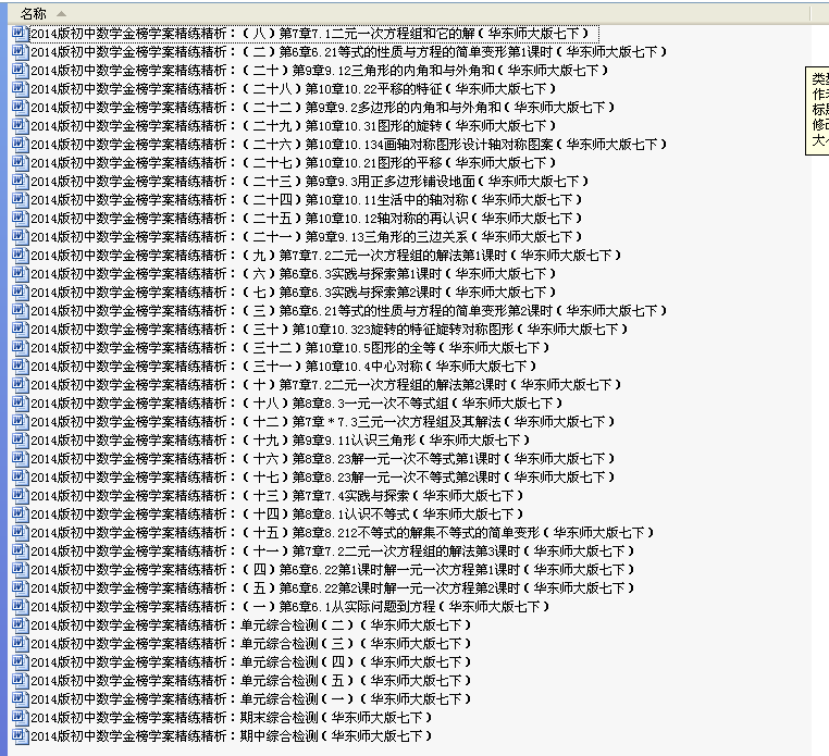 【打包下载】2014版初中数学金榜学案精练精析汇总(39份)(华东师大版七下)