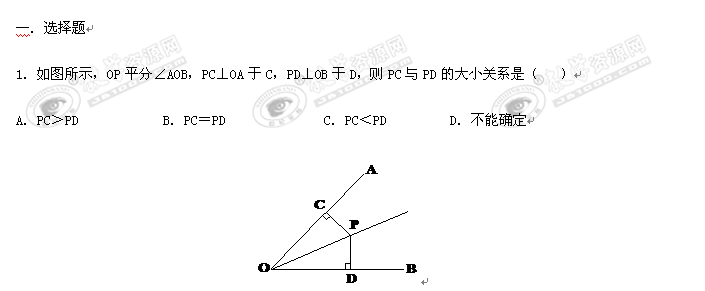 数学:2011-2012学年《角的平分线的性质》同步练习(人教版八年级上)