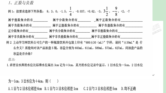 数学:《有理数》章节试题重点分析(北师大版七年级上)扫描版