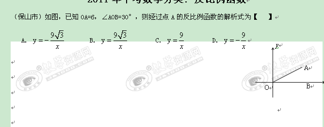 2011年中考数学分类:反比例函数