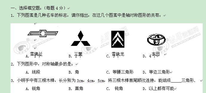 锦屏中学11-12学年八年级上学期月考试卷(数学)缺答案