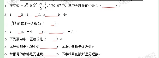 数学:十三章《实数》综合测试(A)(人教版八年级上)