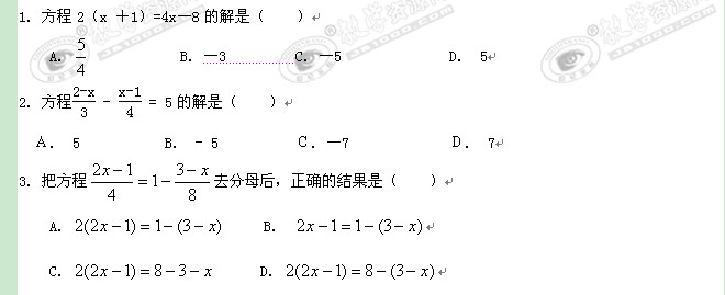 数学:第三章《一次方程与方程组》单元测试(沪科版七年级上)