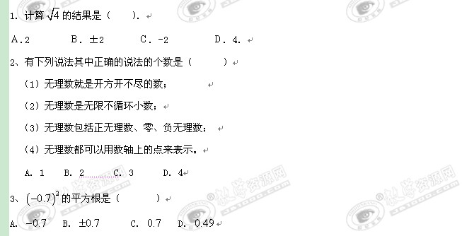 数学:山东省日照开发区中学11-12学年第十三章《实数》单元试题(八年级上)