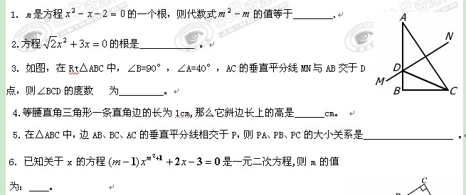 南桥中学11-12学年九年级上学期第一次测试题(数学)