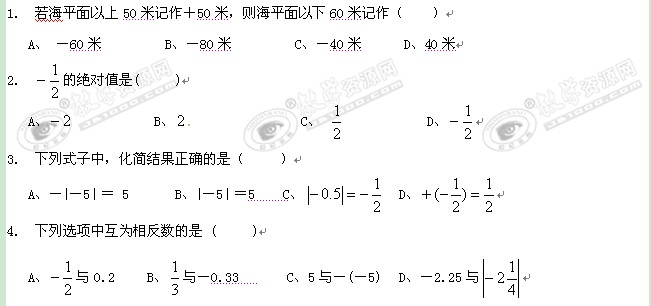 四川省高县硕勋中学11-12学年七年级上学期第一次月考试题(数学)缺答案