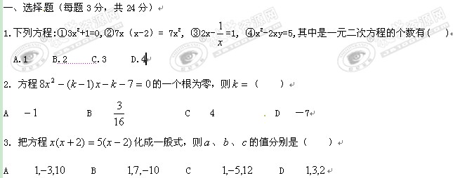 宁夏银川芦花中学11-12学年九年级第一次试题(数学)缺答案