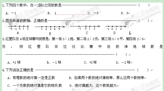仙桃二中11-12学年七年级上学期秋季学期测试(数学)缺答案
