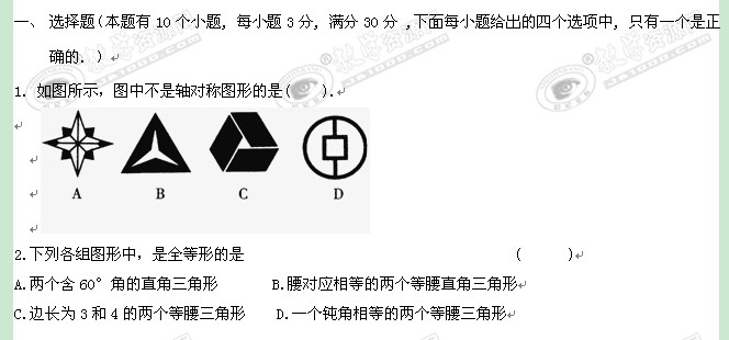 贵州省瓮安县天文中学11-12学年八年级上学期期中素质测试题(数学)缺答案