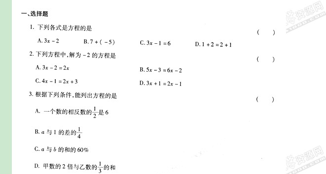 山东省单县郭村镇大李海中学11-12学年第八章《一元一次方程》课时练习 (七年级上)