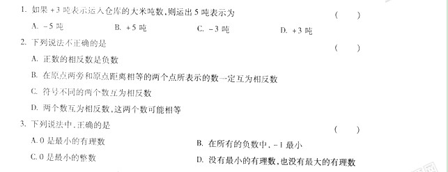 数学:山东省单县郭村镇大李海中学11-12学年第二章《有理数》单元检测 (七年级上)