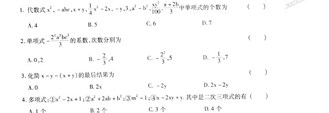 数学:山东省单县郭村镇大李海中学11-12学年第六章《整式的加减》单元检测 (七年级上)