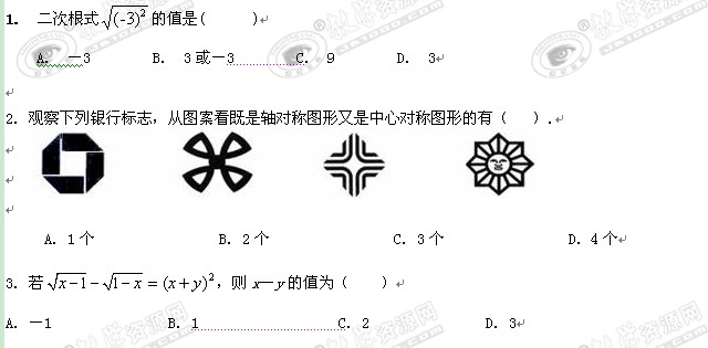 麻洋中学11-12学年九年级上学期期中试题(数学)
