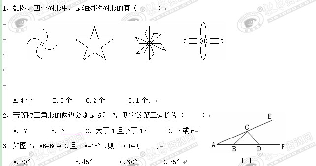 数学:澄海实验学校11-12学年第十二章《轴对称》单元测试(八年级上)缺答案