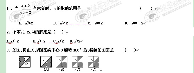 信阳市上石桥中学11-12学年九年级上期期中考试题(数学)