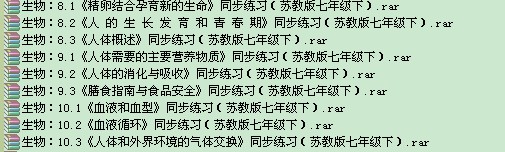【打包下载】生物:同步练习(苏教版七年级下)(18套)