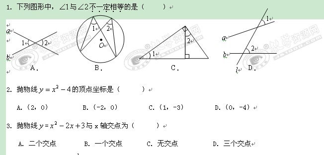 浙江省宁波七中2012届九年级上学期第一次月考试题(数学)